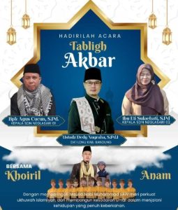 BERITASEJABAR.id – Tabligh Akbar dalam memperingati Maulid Nabi Muhammad SAW di Sekolah Dasar Negri Neglasari 1 dan 2,adalah sebuah acara keagamaan dimana para siswa dan guru serta orang tua murid SDN Neglasari 1 dan 2 berkumpul untuk mendengarkan tausiyah ( ceramah ),bersholawat dan mengikuti kegiatan edukatif lainnya dalam meneladani akhlak Rosulullah SAW.