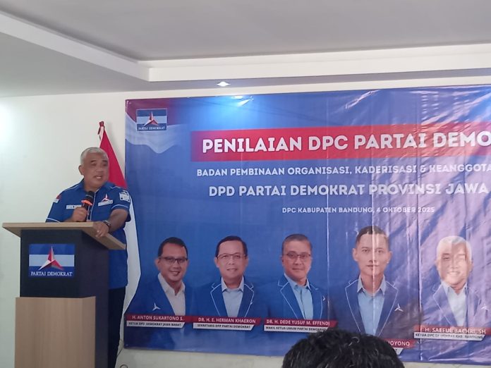 BERITASEJABAR.id – DPD Partai Demokrat Provinsi Jawa Barat yang di wakili oleh BPOKK DPD Jawa Barat Andi Mohamad Rafik.SE,Dangi DPC Partai Demokrat Kabupaten Bandung dalam acara Penilaian DPC partai Demokrat kabupaten Bandung meliputi Badan Pembinaan Organisasi,Kaderisasi dan Keanggotaan Daerah.Bertempat di Graha Macan kantor DPC Partai Demokrat kabupaten Bandung,Baleendah Sabtu 4/9/25.