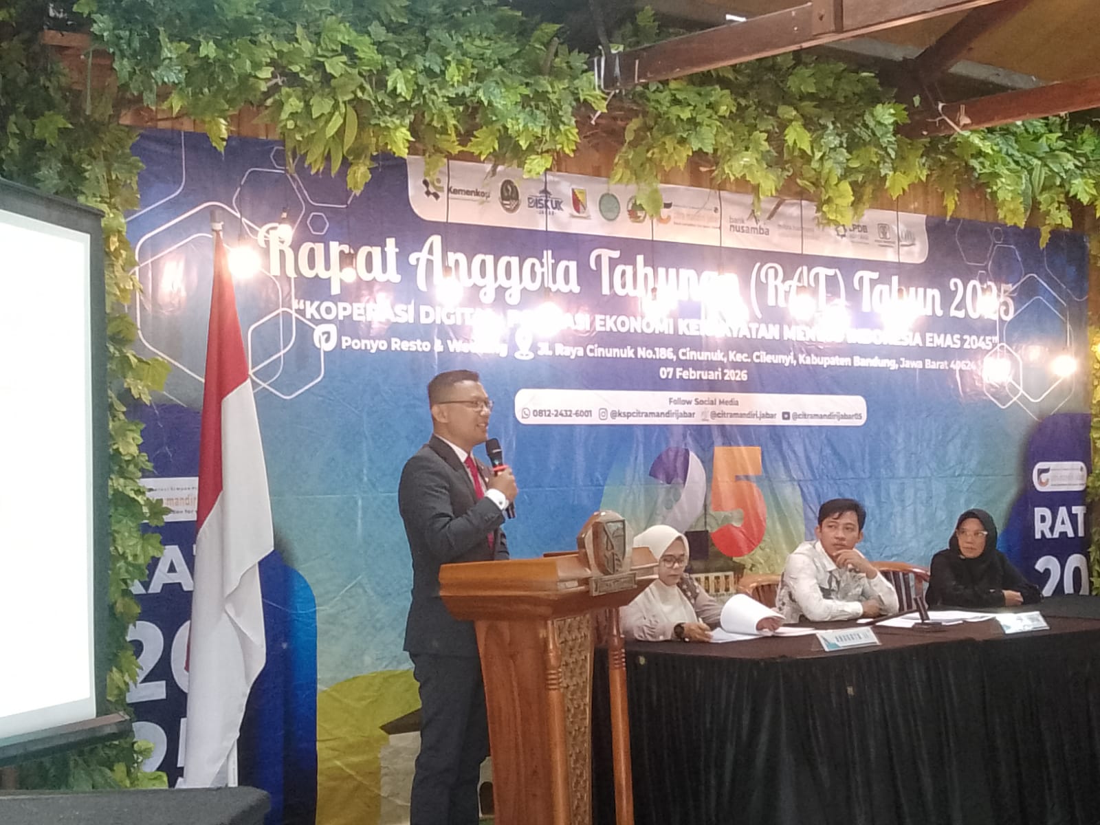BERITASEJABAR.id – Bandung, 07 Februari 2026 – Koperasi Simpan Pinjam Citra Mandiri Jabar sukses menyelenggarakan Rapat Anggota Tahunan (RAT) Tahun 2025 dengan tema “Koperasi Digital, Pondasi Ekonomi Kerakyatan Menuju Indonesia Emas 2045”. Acara yang berlangsung di Ponyo Resto dan Wedding, Jalan Raya Cinunuk No.186, Cinunuk, Kecamatan Cileunyi, Kabupaten Bandung pada hari Sabtu ini dihadiri oleh berbagai pihak terkait yang menunjukkan dukungan besar terhadap perkembangan koperasi sebagai ujung tombak perekonomian rakyat.